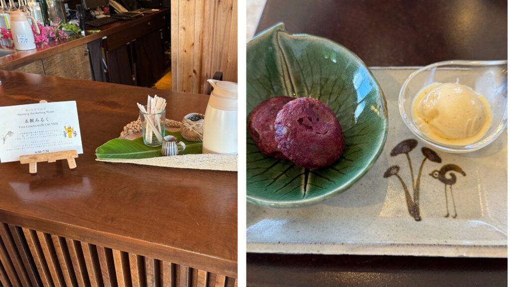 | 6:30〜7:30 | 朝のお目覚め水:五穀みるくなど、季節で変わるお目覚めドリンク |