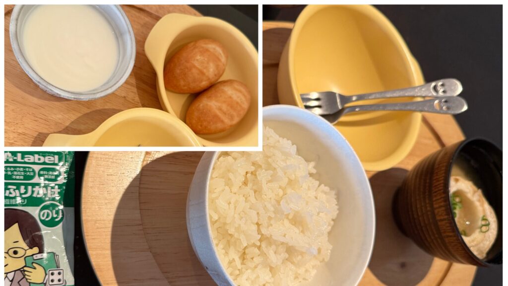 - 子どもには無料でご飯に味噌汁またはパンとヨーグルトの提供もあります。