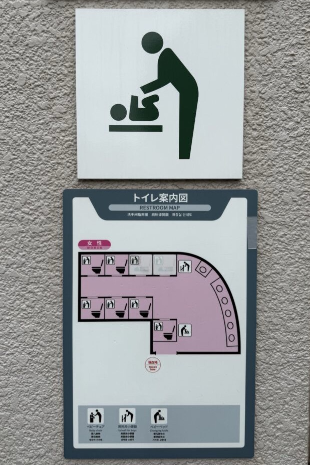 園内のほとんどのトイレに おむつ替え台・多目的トイレ が設置されています。