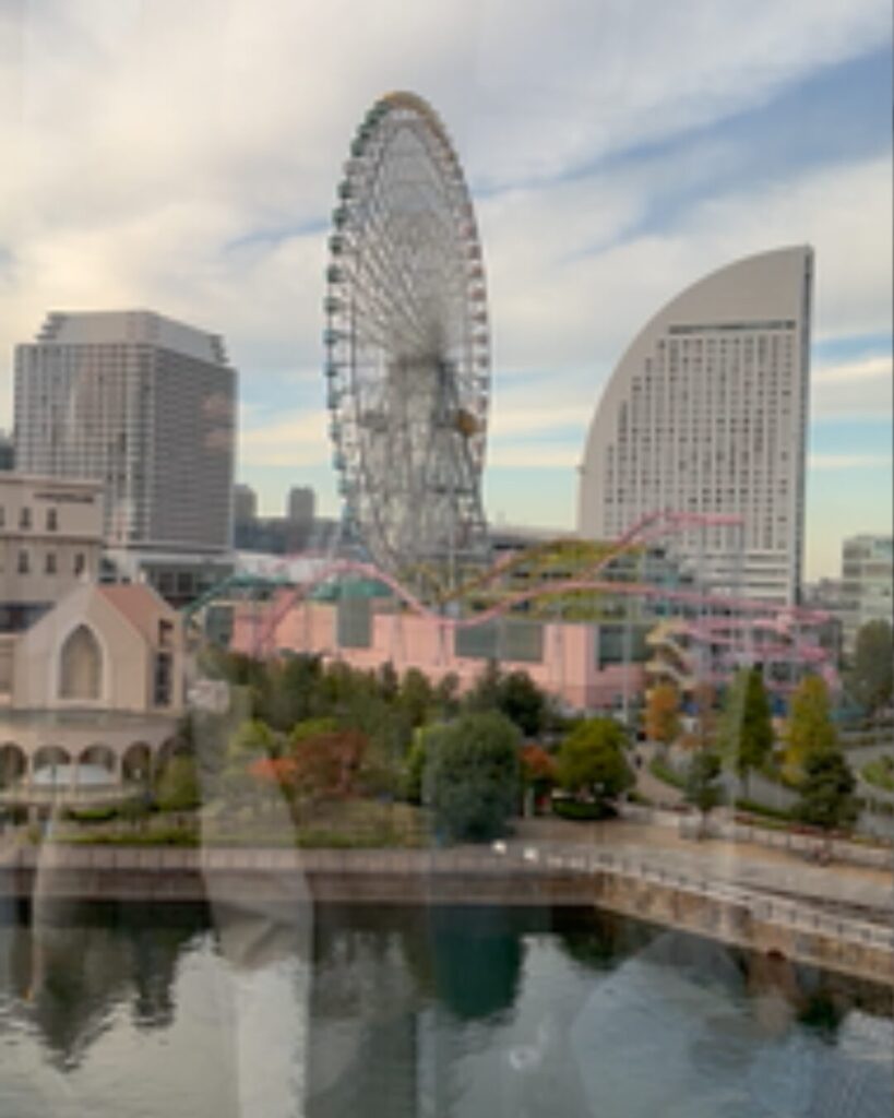進むにつれて観覧車「コスモクロック21」や横浜の街並みが近づいてくる景色に、